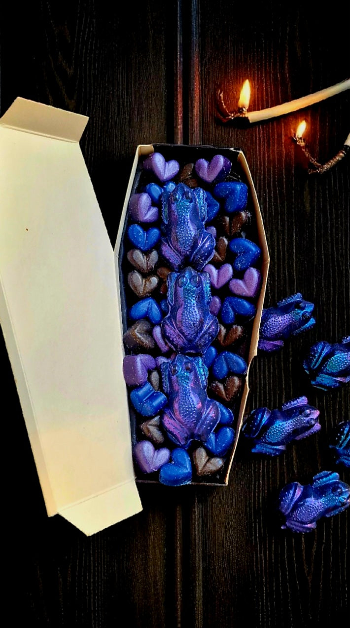Each one comes tucked inside its own coffin-shaped box (because a ghoul needs her glam), weighing approx. 60g – the perfect size for a sinful little indulgence. ⚰️✨